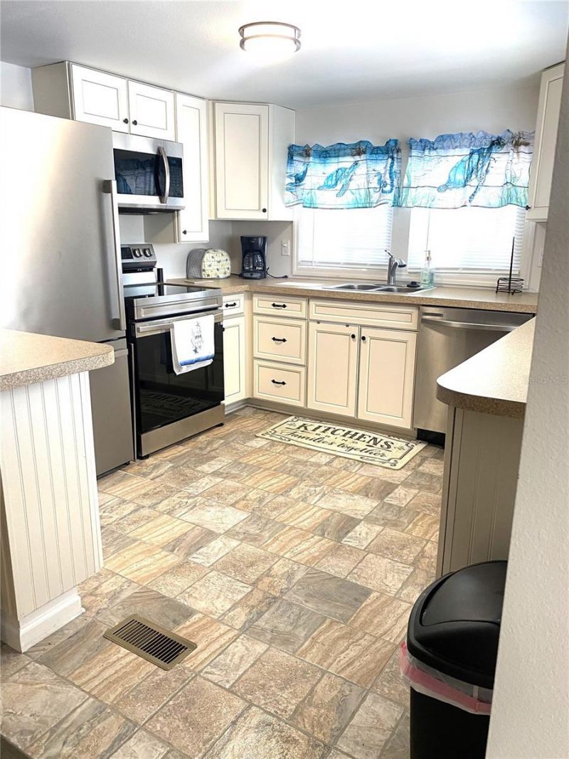 Charming, coastal, and move-in ready, this 3-bedroom, 2-bath home offers an inviting open floor plan designed for comfortable everyday living and easy entertaining. The spacious layout seamlessly connects the living room, dining area, and kitchen, creating a bright and welcoming atmosphere throughout.The kitchen features a convenient breakfast bar, perfect for casual dining, morning coffee, or gathering with guests while preparing meals. Thoughtful design continues into the primary suite, where you'll find a private ensuite bathroom along with the added convenience of an in-suite laundry area-making daily living both practical and efficient.Each bedroom provides flexibility for guests, hobbies, or a home office, while the home's coastal-inspired furnishings add warmth and charm, making it truly move-in ready. Step outside to enjoy the covered carport and embrace the relaxed Florida lifestyle this home offers.Located in Trailer Estates, a Special Park and Recreation District governed under Chapter 418, Florida Statutes, residents own their land so no lot rent, CDD, or HOA fees. The annual park tax covers cable, high-speed internet, trash pickup, fire and rescue services, and access to outstanding amenities including a marina with rentable boat slips, private beach, pool, hot tub, fitness center, shuffleboard, bocce ball, pickleball, woodshop, and nearly 60 active clubs and social events. Experience one of Sarasota Bay's most vibrant and welcoming 55+ communities.